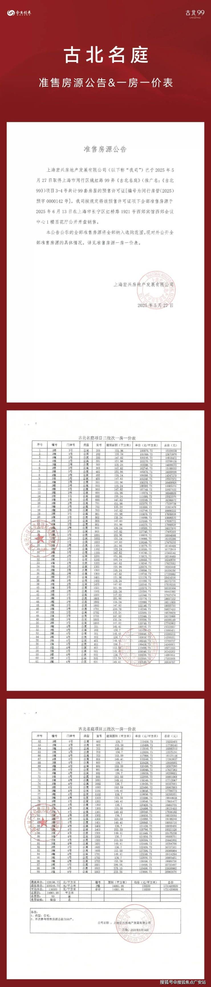 最新消息,内环旁低密墅区准现房「古北99」三期5月29日认购!推出建面约135-154㎡三房!