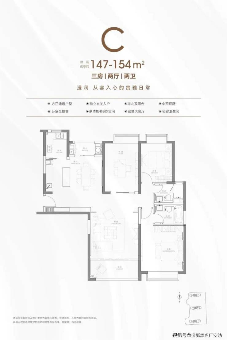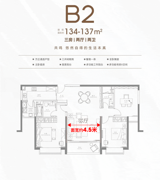 建面约134-154㎡大三房设计,告别逼仄空间,为每位家庭成员打造宽敞空间;
