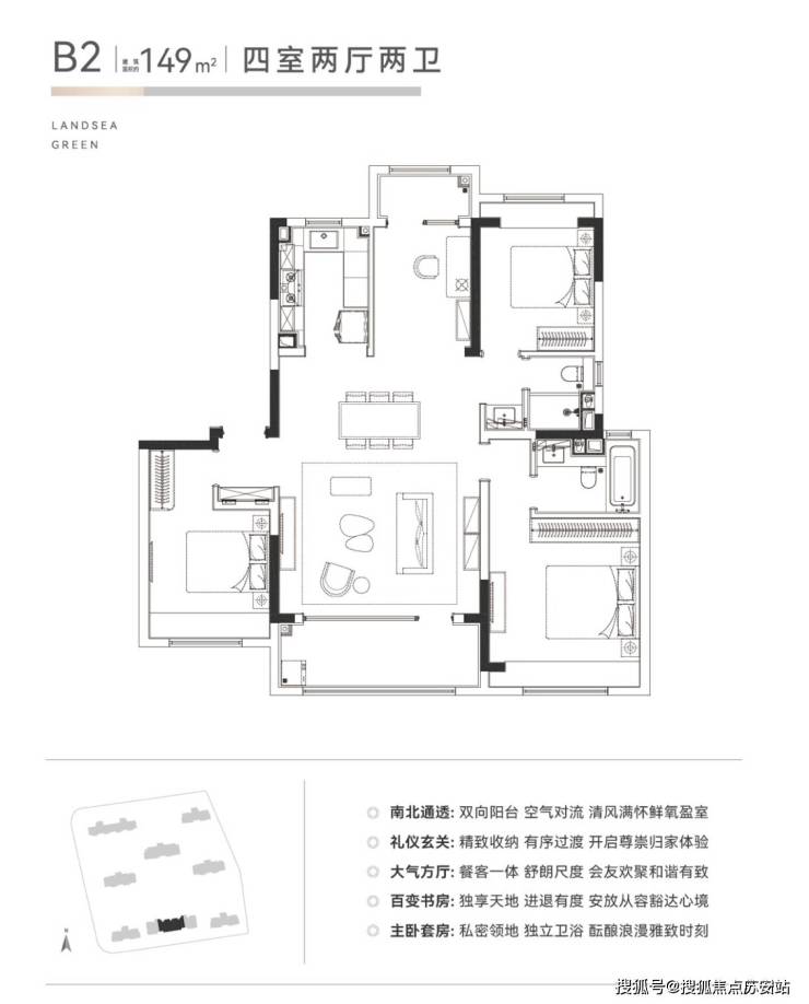 【建面149㎡4居】485.0-505.0万-分布于2#,2梯4户,层高3.00米,总楼层14F