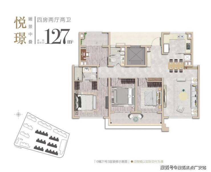 约 127㎡ 洋房 四房两厅两卫:总价 520-580 万,阔绰四房,独立书房,改善首选