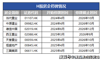 截至目前,H股仍有8家内地房企处于停牌状态,退市风险持续高悬。其中,当代置业、中原建业的停牌时间已届满18个月,根据港交所相关规则,已触及强制退市条件,退市结局已定,仅待交易所官方公告落地。德信中国的停牌期限将于2025年12月到期,若届时仍未能满足港交所复牌指引要求,也将面临退市风险。