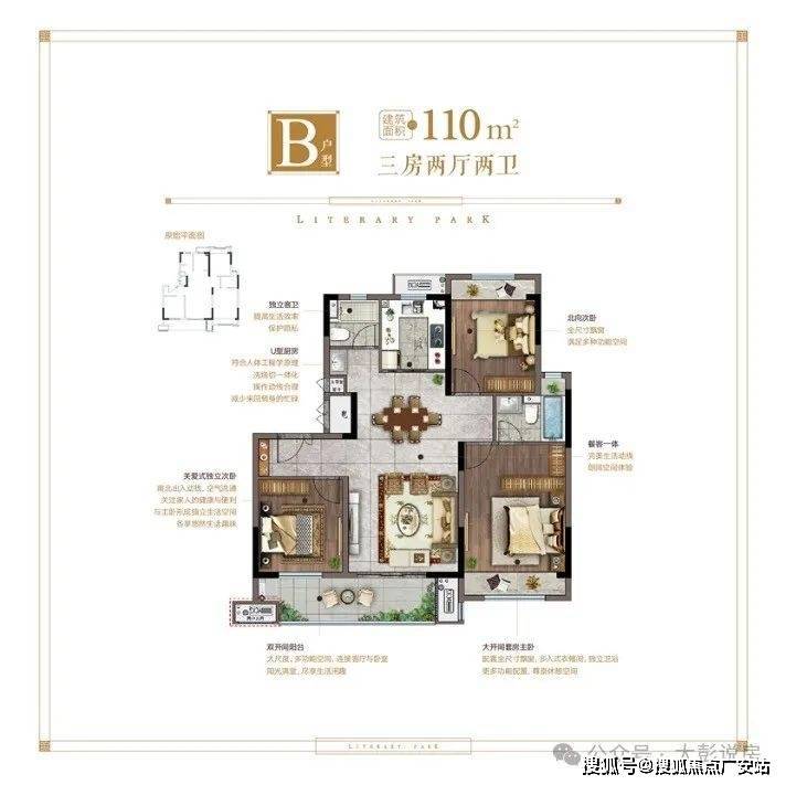 【B户型】建筑面积约110㎡ 3室2厅2卫