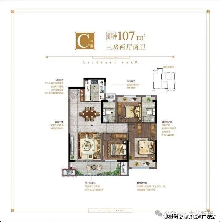 【C户型】建筑面积约107㎡ 3室2厅2卫