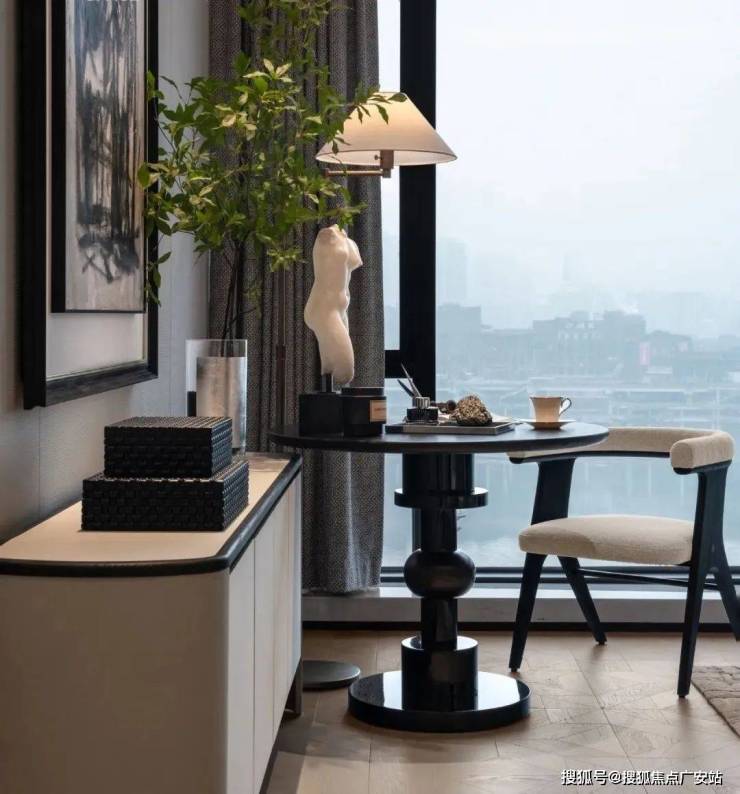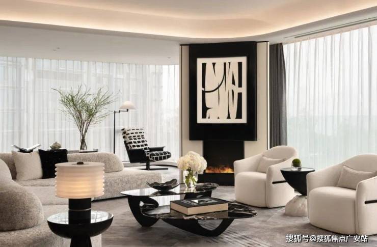 室内设计融合了香奈儿风格的温柔都市时尚感。整体色调以黑白灰为主,既有现代风尚的冷静与理性,又有都市生活的时尚与雅致。