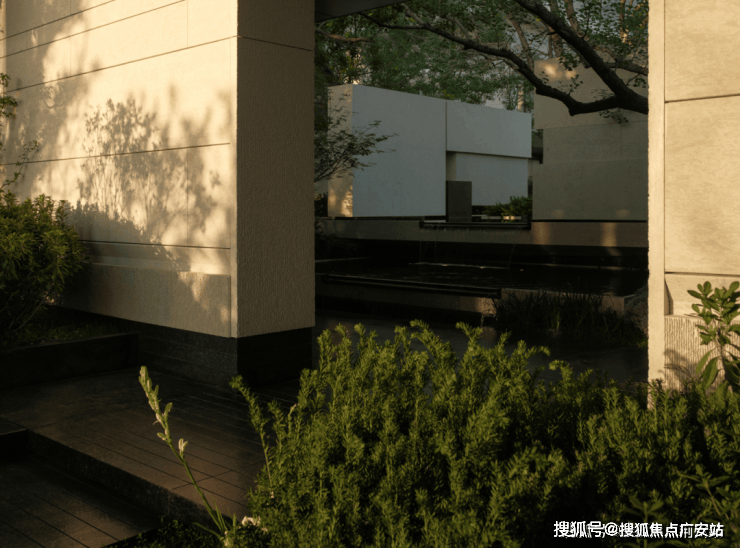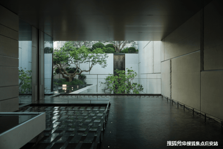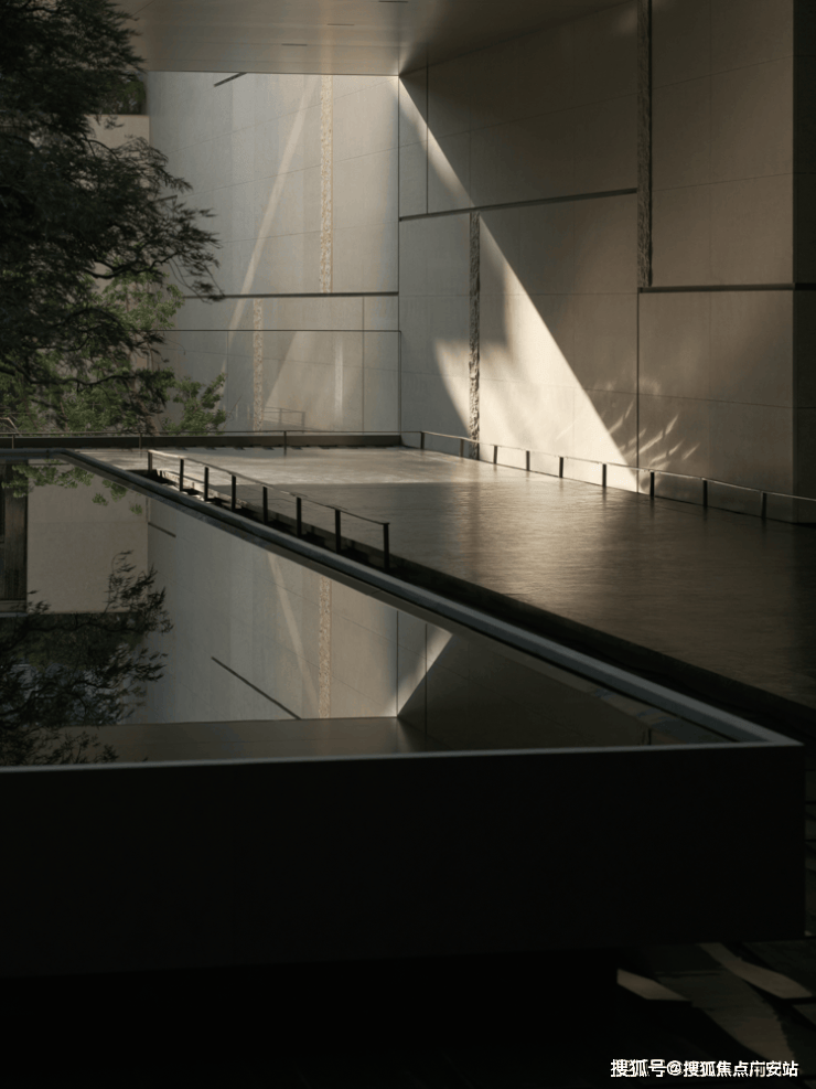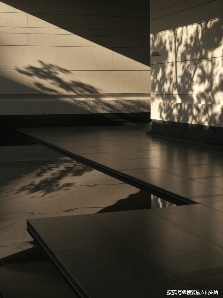 阳光穿过树梢,将斑驳的树影投射在干净的石墙与水面上,随风摇曳,随时间流转。这一刻,景观不再是静止的画面,而是一部关于时间的电影。水的流动、树的呼吸、光的游走,这些细腻的设计细节,让原本高冷的空间有了温度,让每一次驻足,都能感受到自然最本真的呼吸。