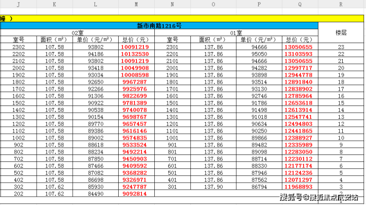 最新一房一价表: