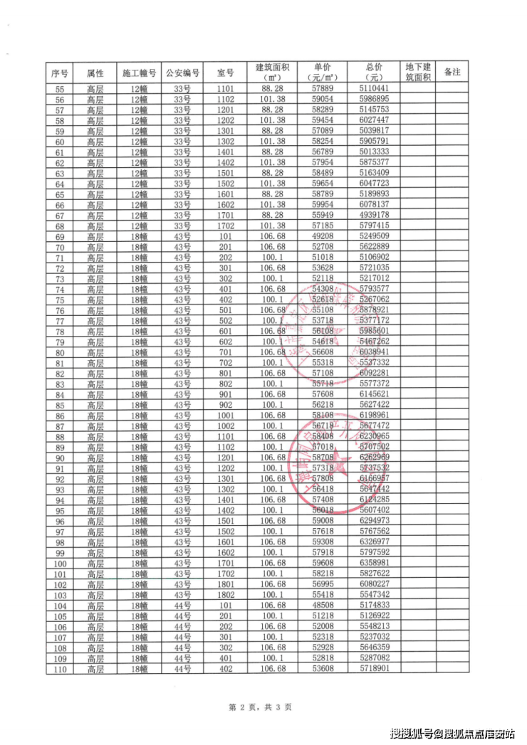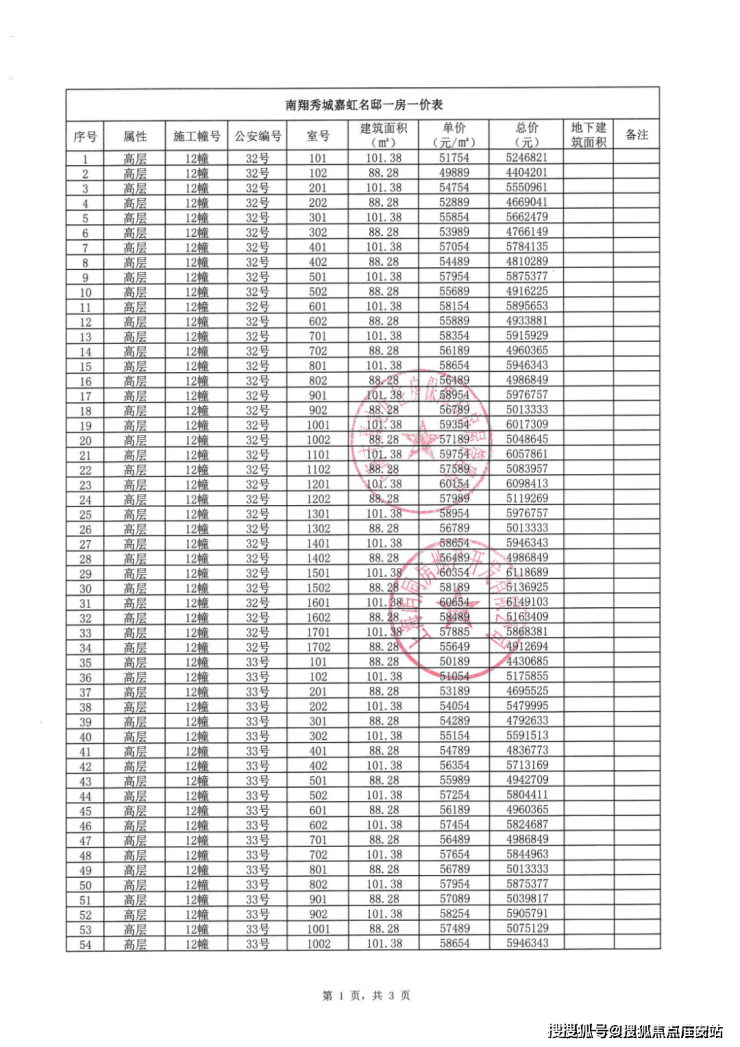 一房一价表: