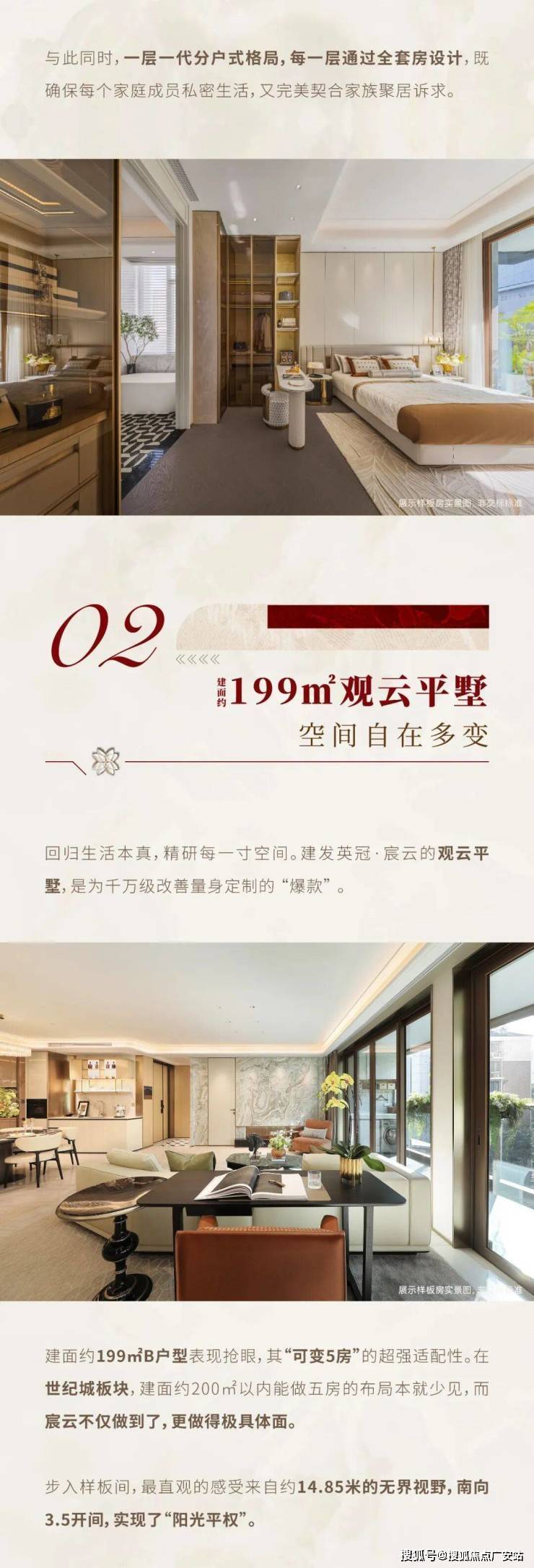 首先从小区品质来看,宸云并不是那种混合刚需与改善的综合盘,而是纯粹为改善群体定制。164户的体量,配上约1800方的下沉式会所,恒温泳池、私宴厅、健身房、书吧等功能一应俱全,真正实现了“少数人的圈层生活”。