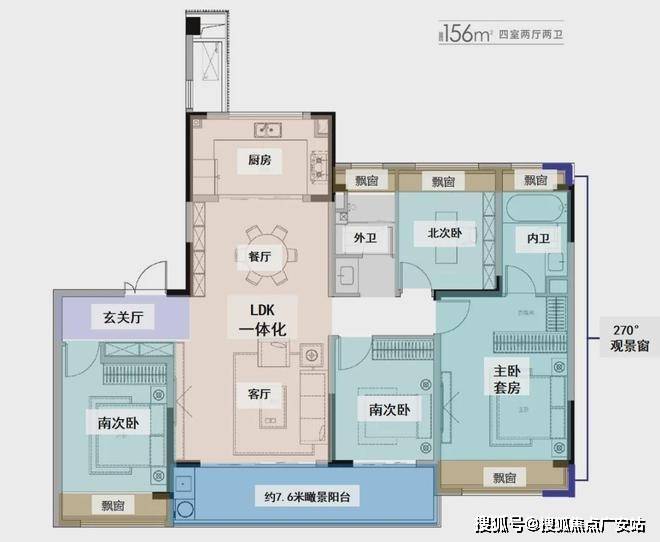 澜庭湾颠覆“好房子=高门槛”的公式,不妨来看下这个156㎡的大四房明星户型: