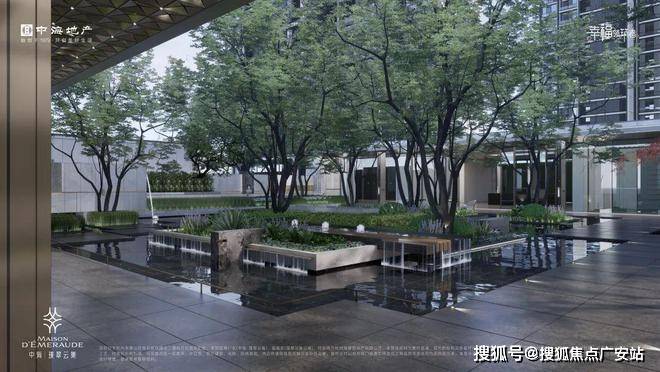 切换到小区主入口,以院落、水景、长廊形成了系统化场景串联,以泗水归堂为节点,把喧嚣城市代入静谧园区,形成酒店般的归家感受。