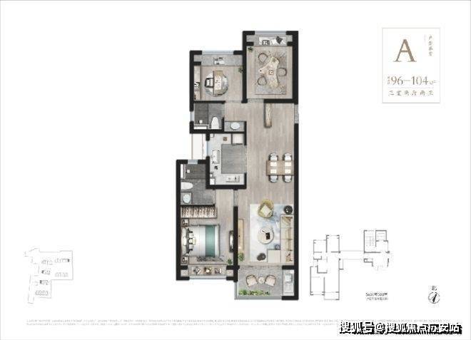 建筑面积约99-104㎡3房