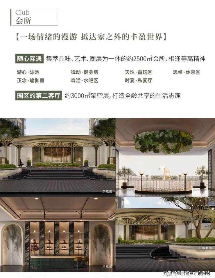 社区上配备了约2500㎡会所,设置了游⼼·泳池、天性·童玩区、思坐·休息区、律动·健身房、正念·瑜伽室、森活·⽔吧区、时宴·私宴厅等,还有约3000㎡架空层。