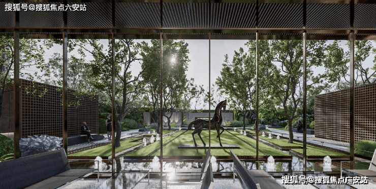 社区内78%的土地用于打造沉浸式园林景观,以约200米东西向仪式性景观主轴与约150米南北向功能性次轴为核心,串联森林剧场、阳光草坪、曲水花园等9大互动空间,并环绕450米森氧跑道,形成“两轴一环三园”的立体园林体系。