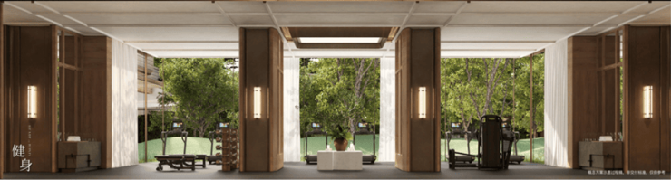 3500㎡下沉水苑“回归之境”,汇聚会客、泳池、茶室等多功能空间;百米绿茵“探索之境”,融入派对庭院、文学花园与游戏甲板;