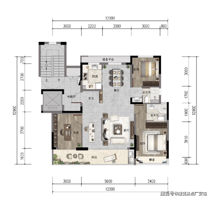 主卧套间自带270°转角大飘窗,打造独立电梯厅,初改户型尽显壕气!