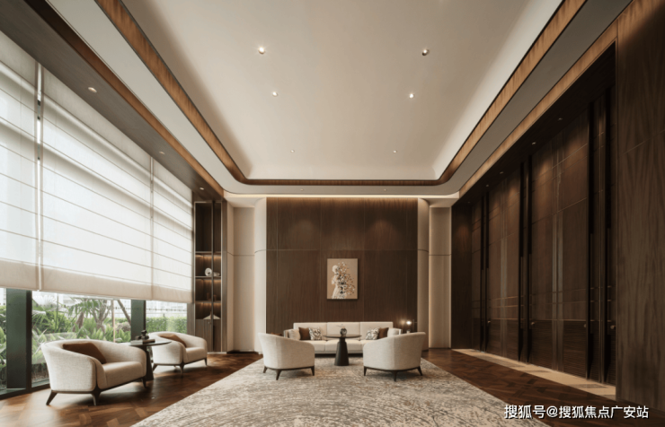 门窗:2.4 米超宽幅 Low-E 三玻两腔系统窗,270° 环幕江景视野
