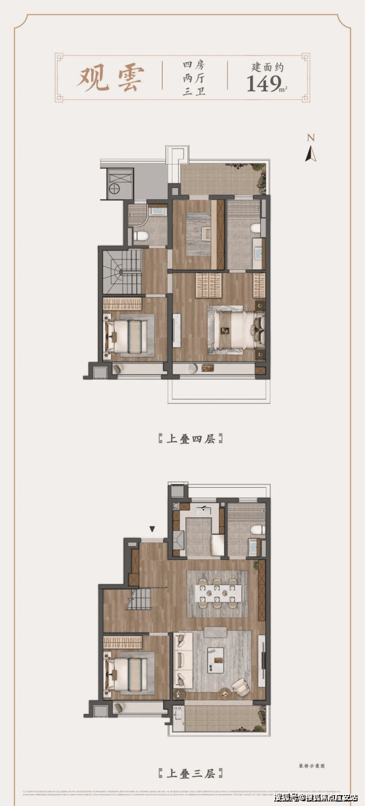 上叠建面约149㎡4房户型▼