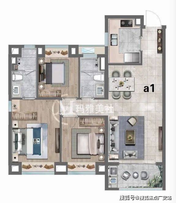 a1户型图 建面约98㎡陕建名城映蓝售楼处电话☎:400-8558-224✔✔✔【预约☎】