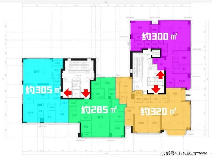 首推建面约285/300/305/320/600㎡大平层,网传户型图仅参考