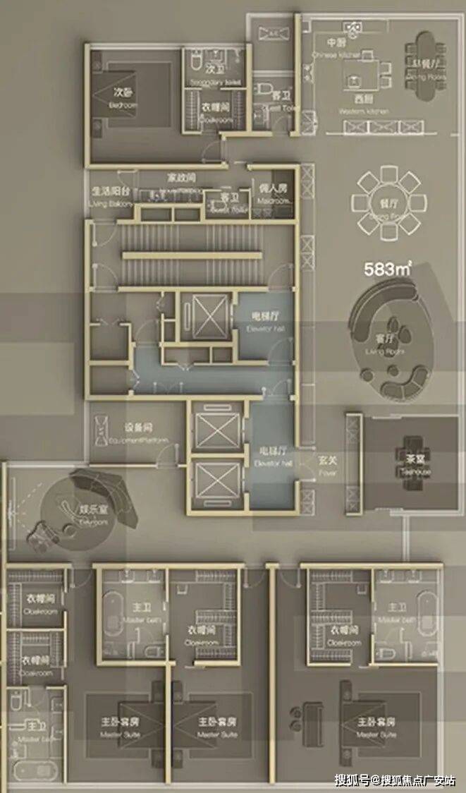 高区建面约583㎡五室两厅六卫