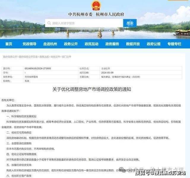 据杭州市住房保障和房产管理局方面介绍,《通知》于5月9日起施行,原有政策出现不一致的,以最新通知为准。