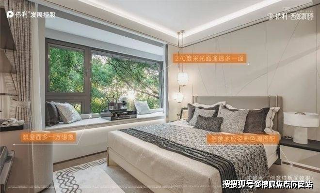 保利西郊和煦售楼处电话:400--969-2958🤖🤖次卧实现270°L型飘窗,双向窗户采光,可以轻松拓展出书桌及收纳空间,尺度感非常不错。
