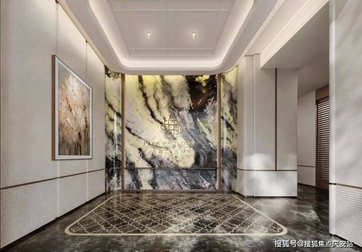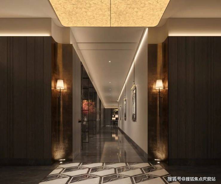 一梯一户与归家礼仪:通过错位设计实现实质的一梯一户,电梯厅成为私享空间。入户玄关采用奢石与水刀拼花工艺,营造出强烈的归家仪式感和尊贵体验。