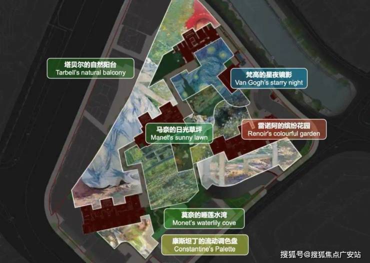 具体到社区景观上,泰国的景观大师Pok从莫奈《鸢尾花小径》等印象派大师的画作中汲取灵感,为外滩瑞府打造了具有松弛感的美学景观意向,模糊了建筑与自然的边界;