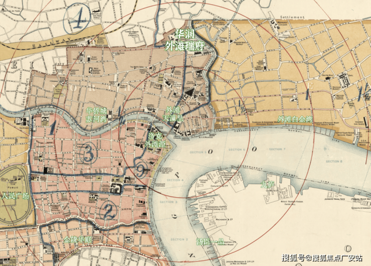 翻开1916年上海地图,以黄浦江与苏州河“一江一河”交汇处为原点,外滩瑞府所在地块,恰处于城市核心第二圈层(1-2公里范围内),与华侨城苏河湾并列,而金陵华庭则位于第三圈层。