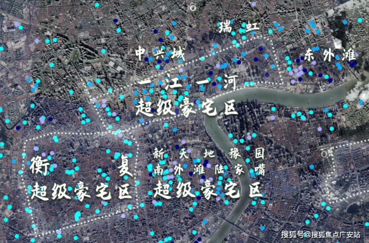 它们分别是黄浦江与苏州河交汇处的一江一河超级豪宅区以及新天地到陆家嘴超级豪宅区。