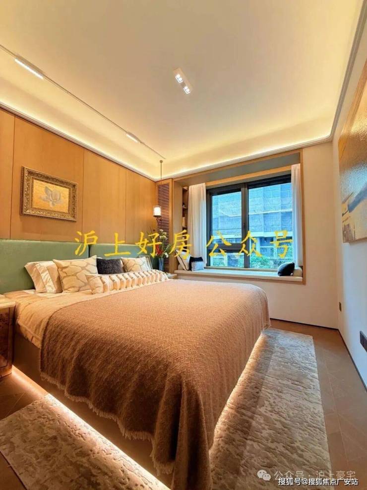 该户型所有卧室兼具舒适居住尺度,尤其是主卧 南向开间达到约 4米,足以放下2米大床, 搭配270°转角飘窗和独 立卫浴,私密性和舒适度简直爆表。南向次卧同样尺度阔绰,足以放下双人床。