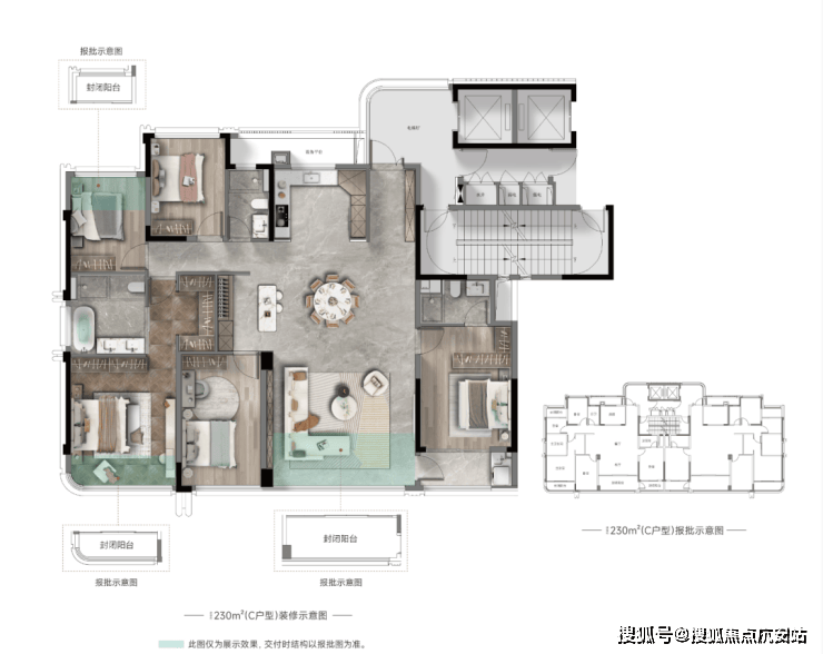 且建面约185㎡与230㎡户型均为全明电梯厅入户。