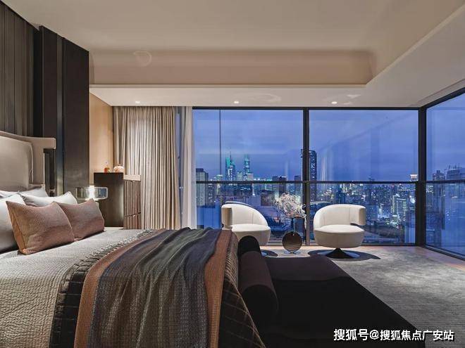 所以每个转角户型都拥有约270°的环幕视野,约10米的大尺度落地转角窗,让城市天际成为窗前永恒的风景线。