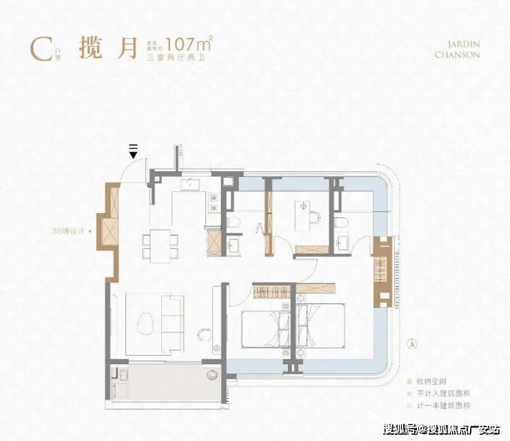 建面约107㎡三房:3S墙设计+双270°全景飘窗(仅边户),主卧套房配备独立卫浴,阳光与风景尽收眼底。