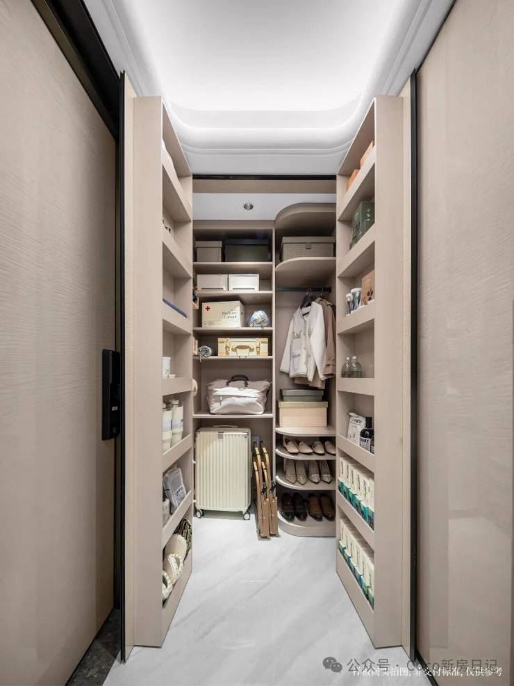独立入户玄关特别设立800库大容量储物区,登山包、婴儿车、滑雪板、行李箱等大物件都能找到安身之处,不再挤占宝贵的居住空间。