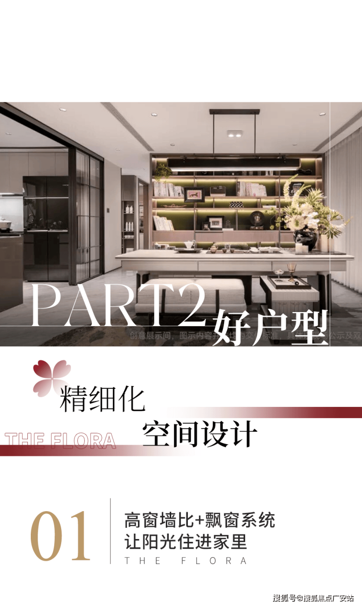 全明户型・高得房率:得房率 76%-80%,无连廊全明飞机户型;85㎡两房三开间朝南,108㎡三房 10.2 米南向面宽,136㎡四房四开间朝南 + 7 个飘窗 + 270° 阳台。