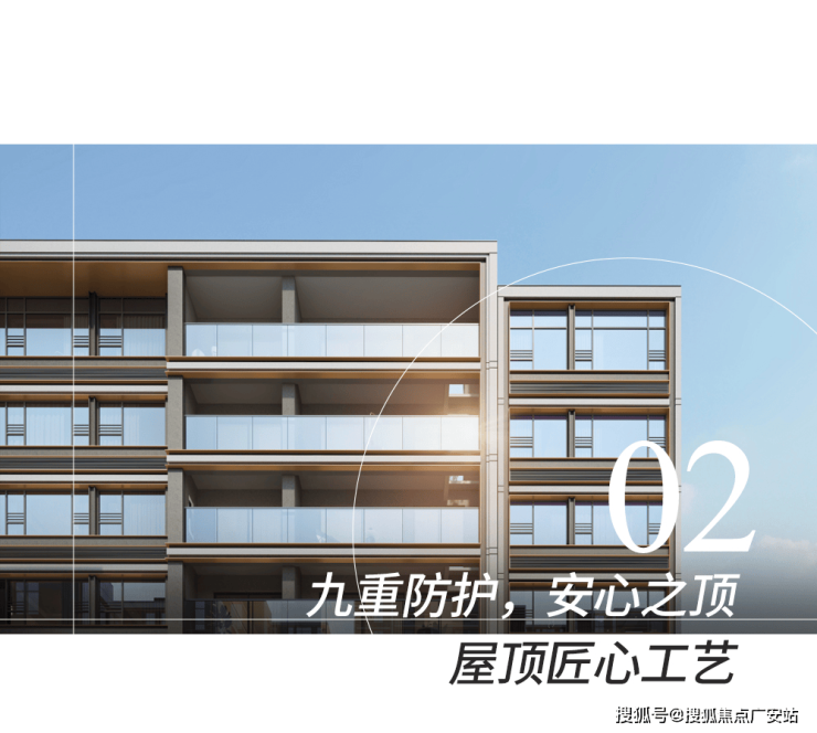 屋顶采用分层工艺,包含结构面涂膜防水、保温层、找平隔离层、卷材防水层等多达9层构造,并设置透气构造、管井防雷等细节处理,以防水泛水构造、滴水线等12项节点工艺,确保防水可靠。同时采用绿城标准的防渗漏设计,采用混凝土一次翻边工艺,在女儿墙根部设置双重防水构造(涂膜+卷材)。