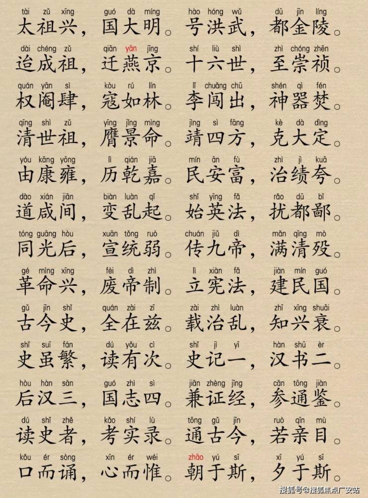 【解释】以上所叙述的是从三皇五帝到建立民国的古今历史,通过对历史的学习,可以了解各朝各代的治乱兴衰,领悟到许多有益的东西。