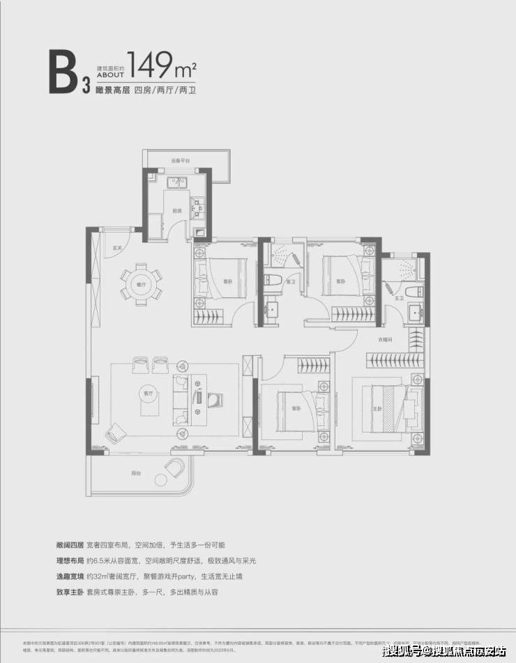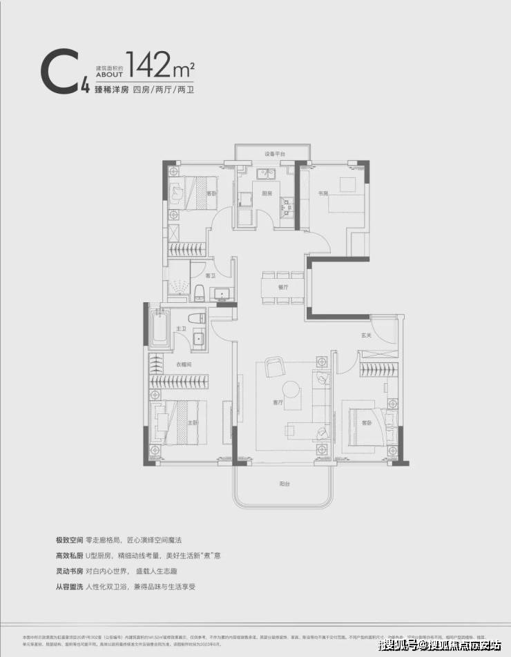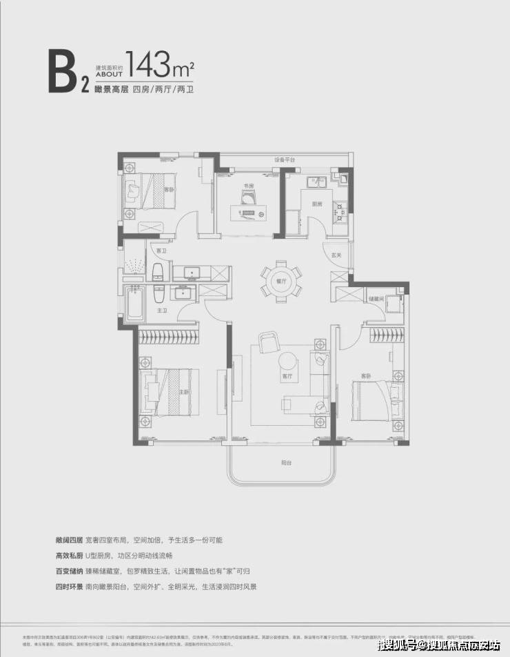 建面约142㎡四房两厅三卫