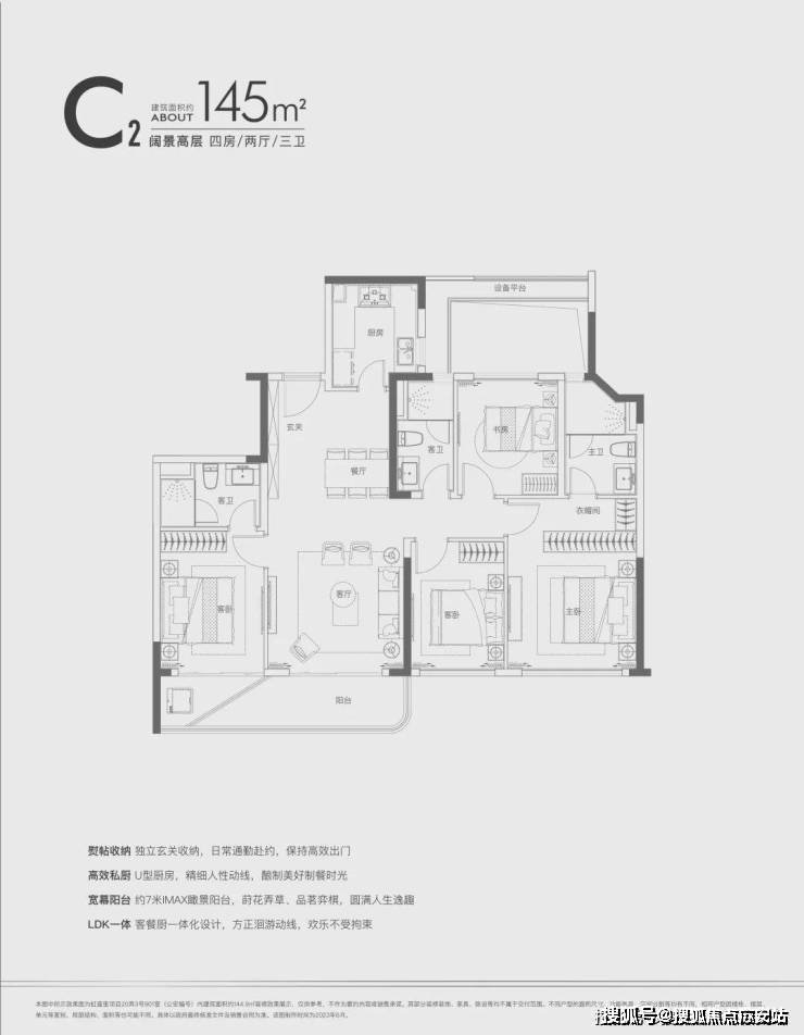 建面约145㎡四房两厅三卫