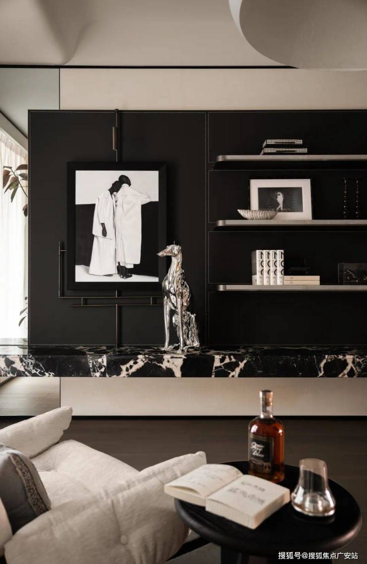室内设计融合了香奈儿风格的温柔都市时尚感。整体色调以黑白灰为主,既有现代风尚的冷静与理性,又有都市生活的时尚与雅致。