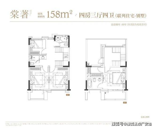 上叠户型4房2厅3卫,三层会客区,四层居住区,阳台+露台+飘窗设计,附加空间非常大,在别墅类产品中实属罕见!