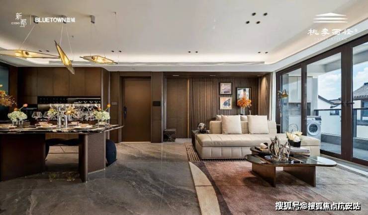 约12.1米南向全景面宽 ,通过大尺度落地玻璃幕墙,将西径山岚与都市霓虹框成会流动的天然画作,让晨昏晴雨都成为室内的有机陈设。 创新LDKG一体化设计 颠覆传统空间区隔,形成餐、客、厨、阳台洄游动线,既保持功能独立又实现视觉贯通,让家庭互动更自在从容。