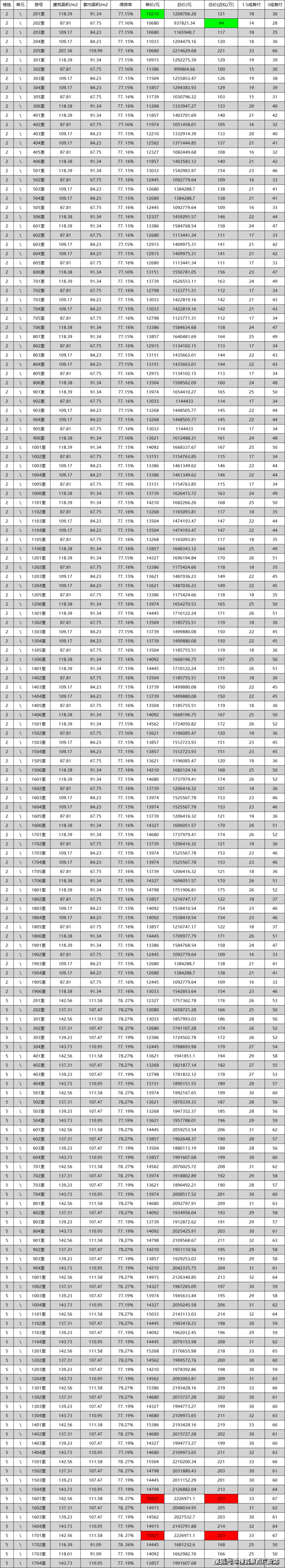 一房一价表