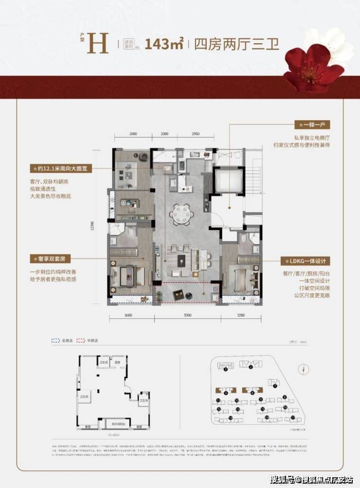户型实用:高层 44-143㎡(刚需 / 刚改全覆盖),合院四至五房、双主卧、南向三开间,空间尺度优、功能性强,适配三代同堂