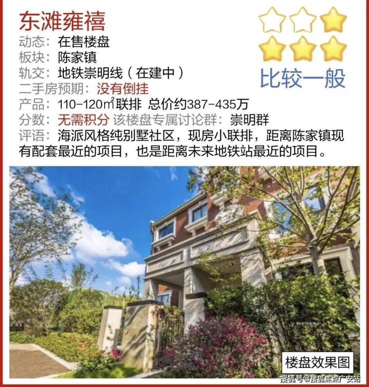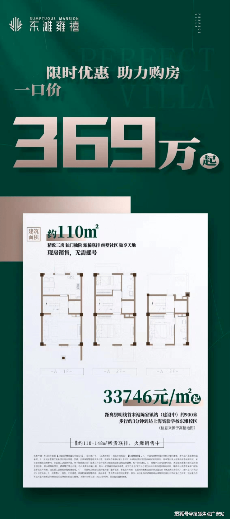 「东滩雍禧」位于崇明岛陈家镇东滩板块,项目由禹洲集团开发打造;项目北临北陈公路、南临银欧路、西临银欧西路、东临陈东路;项目占地面积约5.4万㎡、建筑面积约5.3万㎡、容积率1.0、绿化率38%,由59栋联排和叠加别墅组成,共规划约448户。