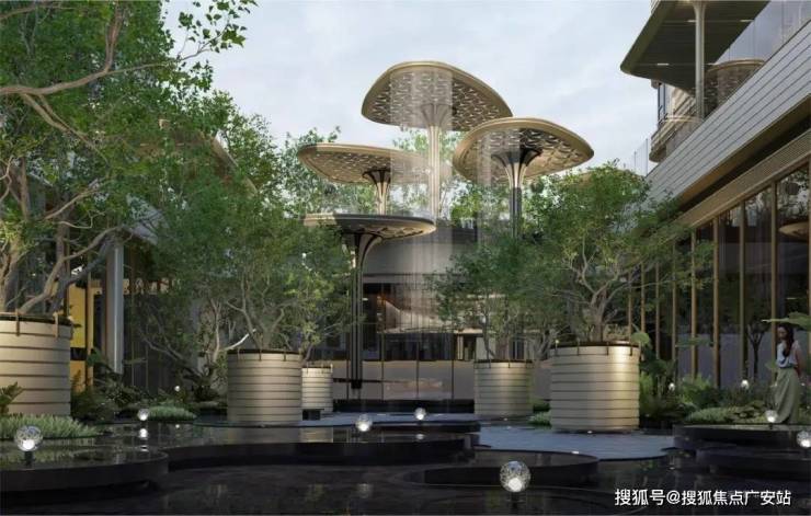 ◎浮岛美学园林:以“林岛漫步、循水归岸”动线造归家仪式感,“叠水—镜面—汀步”立体水网呼应外部水系,连廊串联架空层与景观,实现自然与生活无界。