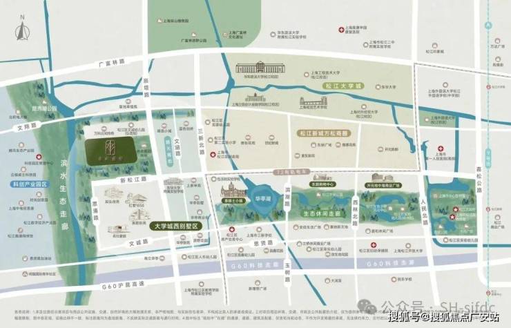 核心占位:位于松江新城方松街道核心,隶属上海五大新城重点发展区域,兼具G60科创走廊产业红利与广富林文旅生态资源