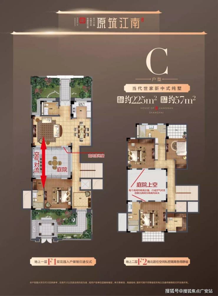 项目采用中式院落式布局设计,每家都能够享受私人庭院,以最小面积225平为例,在户型的中间部分,有一处围合式庭院,位于客厅、卧室的中间处,自家人的院落私密性极好。