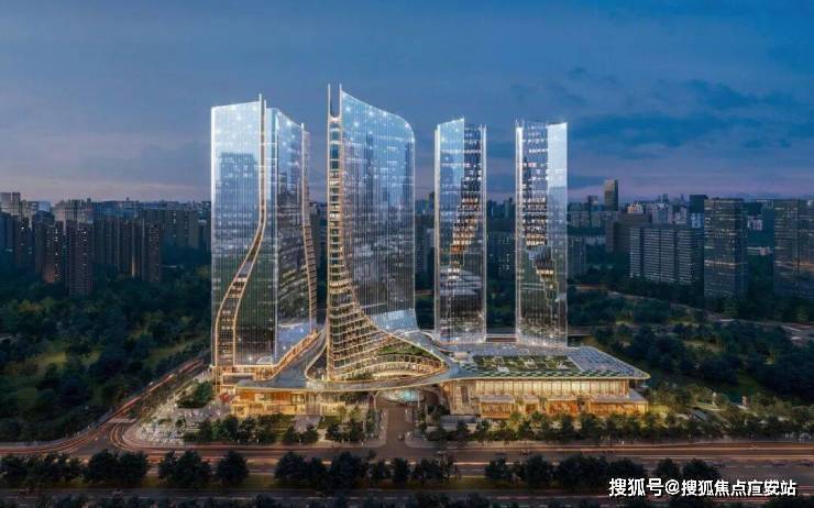 该项目由四座高140米的塔楼组成,综合体的独特张力通过酒店塔楼立面上标志性的巨型玻璃天幕彰显,加强了创造开放姿态的建筑设计理念。